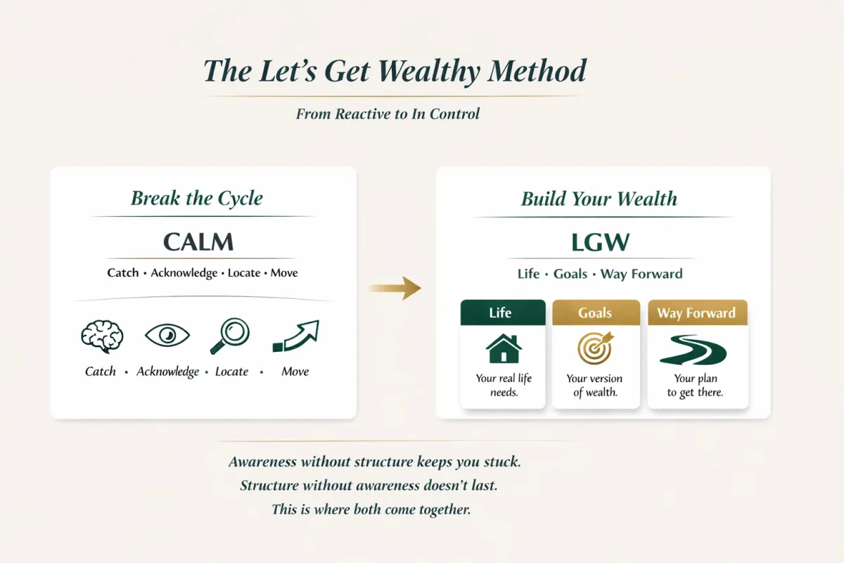 At Let's Get Wealthy, we help business owners turn income into stability, control, and real wealth, starting with your life first, not just your business.